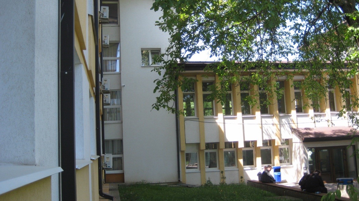 În fotografie se vede Căminul de băieţi şi amplasarea camerei staţiei - geamul stingher de la etajul 2. Am căutat un “buzunar” pe casa scării, în interiorul Căminului, pentru a avea acces usor pe acoperişul plat la cea dată (cu cei peste 40 m necesari pentru antenă). Am cărat cărămizi cu geanta ca să închid buzunarul, troc pe santier: ţuică contra usa de lemn, prize trase din becul de pe casa scării, etc. După montarea gratiilor obligatorii (pe dinăuntru) şi văruirea întregului spaţiu, am constatat că am cam tot ce trebuie (inclusiv calorifer generos) dar fără geamuri. Din acest spatiu am făcut primele legături cu indicativul YO8KGU, apoi trafic “normal”, cca 5 ani.