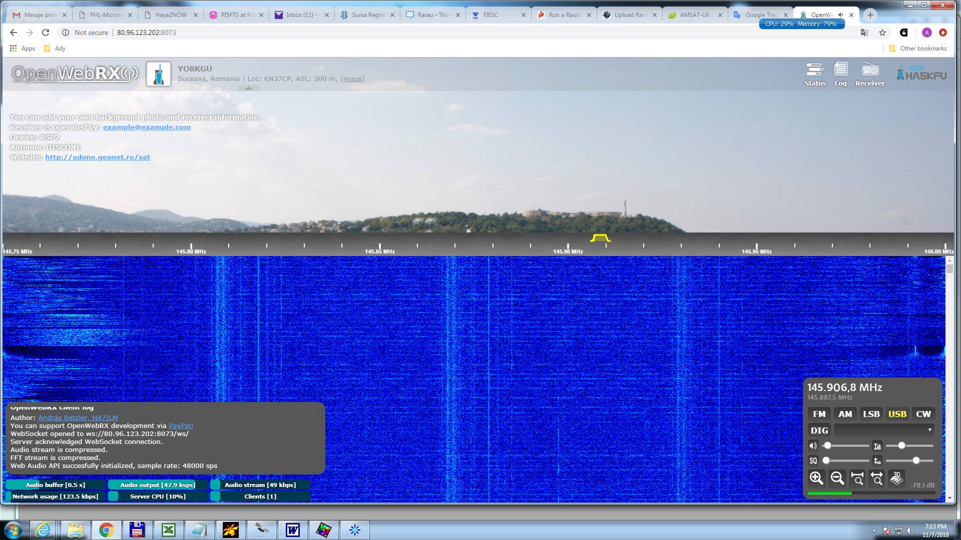 Software-ul de la receptor a fost scris de catre Andrįs Retzler, autorul sistemului OpenWebRX de la adresa sdr.hu iar folosirea interfetei este intuitivă.